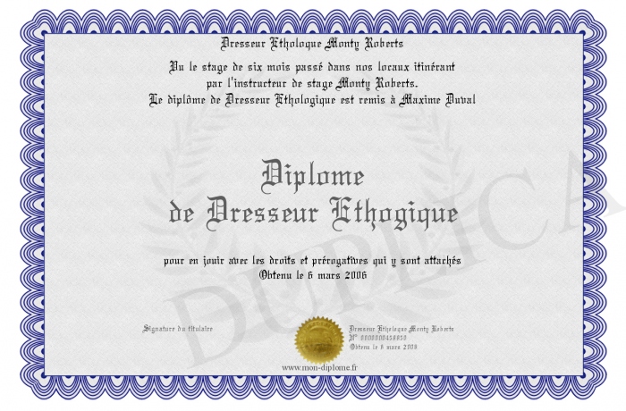 Envoyez par email votre Diplôme de Dresseur Ethogique personalisé