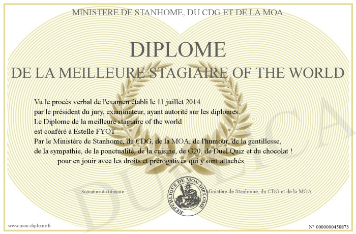 Envoyez par email votre Diplôme de la meilleure stagiaire of the world personalisé