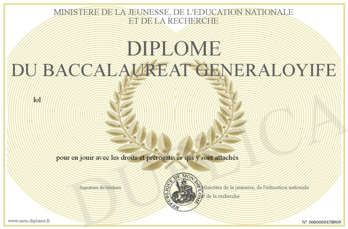 Envoyez par email votre Diplôme du baccalaureat généraloyife personalisé