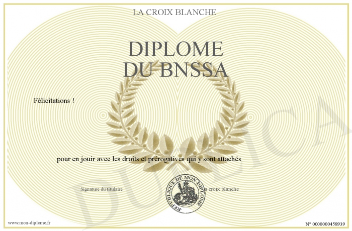 Envoyez par email votre Diplôme du BNSSA personalisé