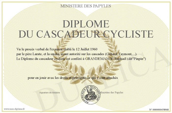 Envoyez par email votre Diplôme du cascadeur cycliste personalisé