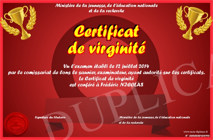 Envoyez par email votre Certificat de virginité personalisé