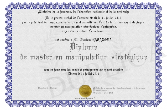 Envoyez par email votre Diplome de master en manipulation stratégique personalisé