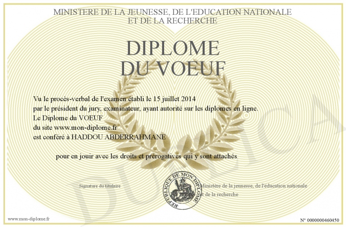 Envoyez par email votre Diplôme du VOEUF personalisé