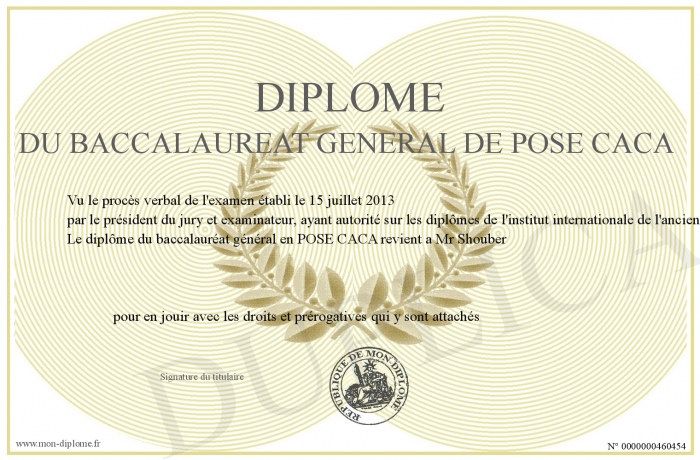 Envoyez par email votre Diplôme du baccalaureat général de POSE CACA personalisé