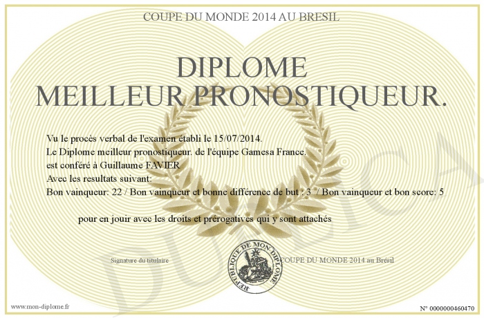 Envoyez par email votre Diplôme meilleur pronostiqueur. personalisé