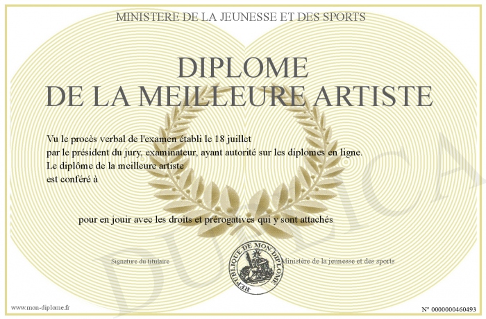 Envoyez par email votre Diplôme de la meilleure artiste personalisé