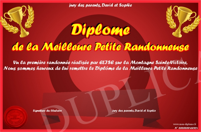 Envoyez par email votre Diplôme de la Meilleure Petite Randonneuse personalisé