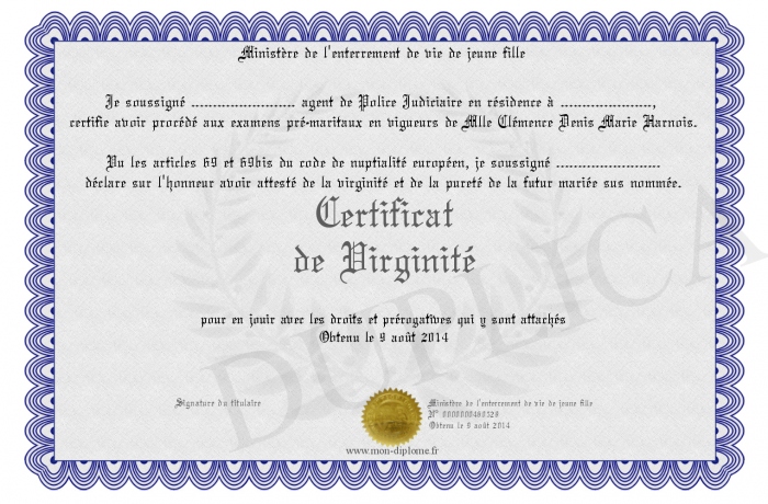 • Certificat de Virginité