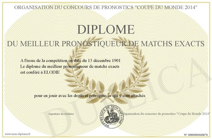 Envoyez par email votre diplome du meilleur pronostiqueur de matchs exacts personalisé