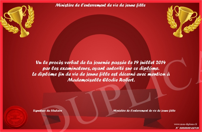 envoyé par le Ministère de l'enterrement de vie de jeune fille !