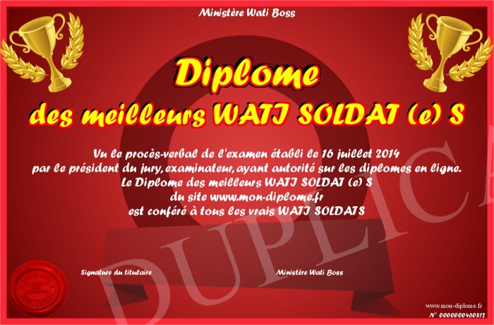 Envoyez par email votre Diplôme des meilleurs WATI SOLDAT (e) S personalisé