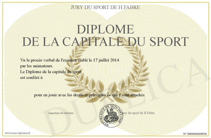 Envoyez par email votre Diplome de la capitale du sport personalisé