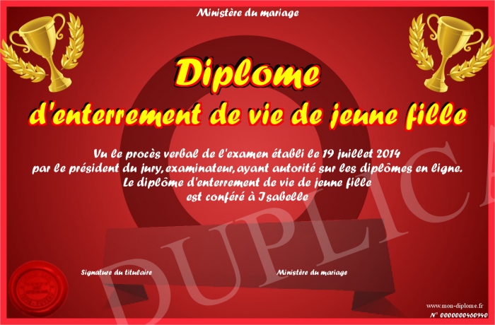• Diplôme d'enterrement de vie de jeune fille