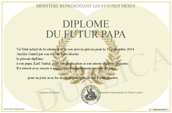 Envoyez par email votre Diplôme du futur papa personalisé