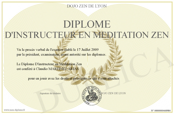Envoyez par email votre Diplôme d'instructeur en Méditation Zen personalisé