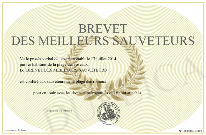 Envoyez par email votre BREVET DES MEILLEURS SAUVETEURS personalisé