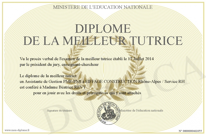Envoyez par email votre Diplôme de la meilleur tutrice personalisé
