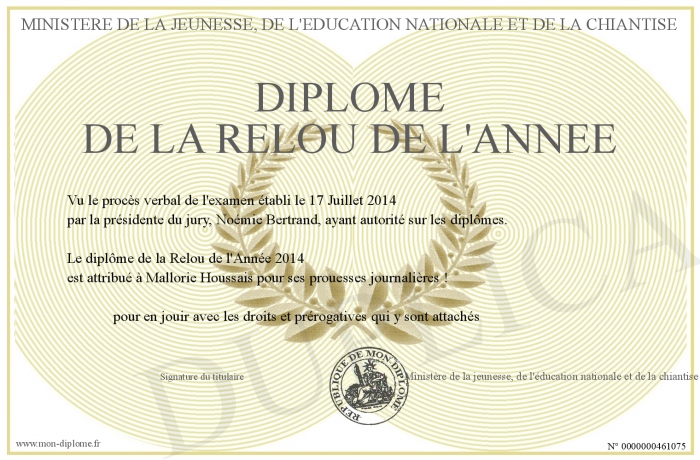 Envoyez par email votre Diplôme de la Relou de l'Année personalisé
