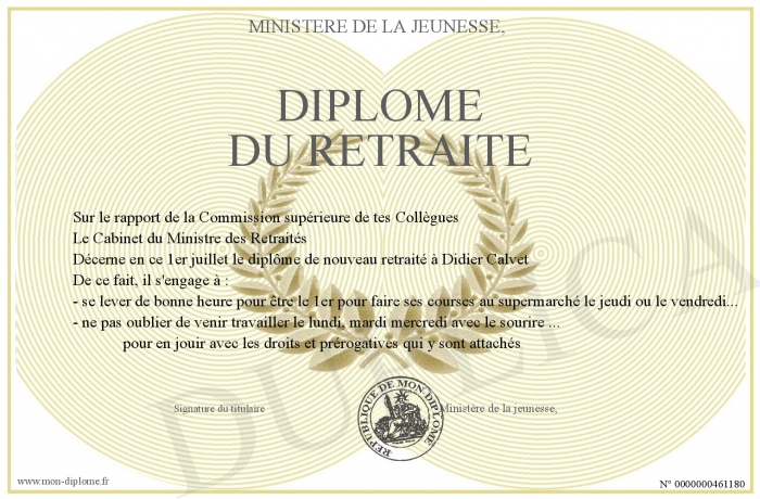 Envoyez par email votre Diplôme du retraité personalisé