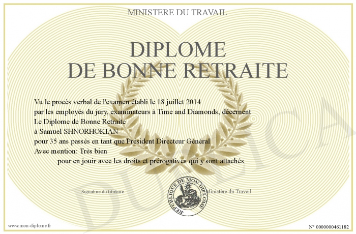 Envoyez par email votre Diplôme de Bonne Retraite personalisé