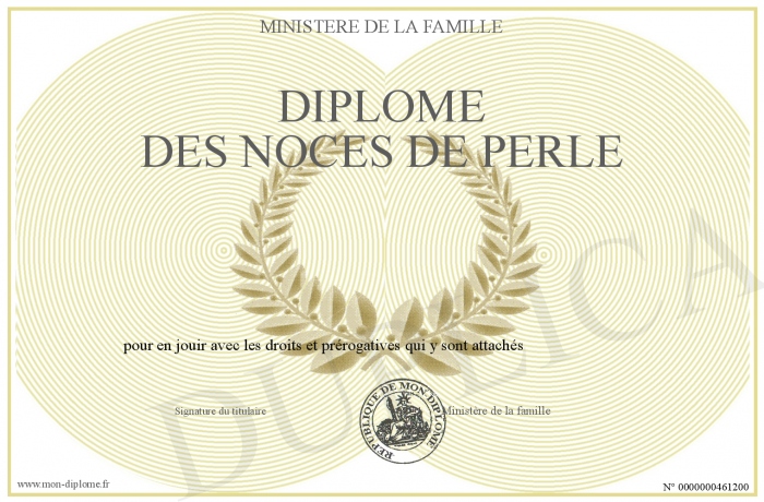 Envoyez par email votre Diplôme des noces de perle personalisé