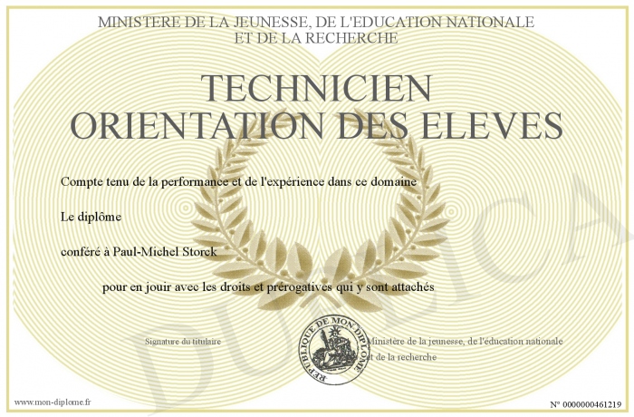 Envoyez par email votre Technicien orientation des élèves personalisé