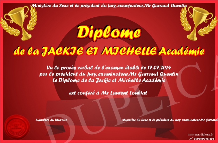 Envoyez par email votre Diplôme de la JACKIE ET MICHELLE Académie personalisé