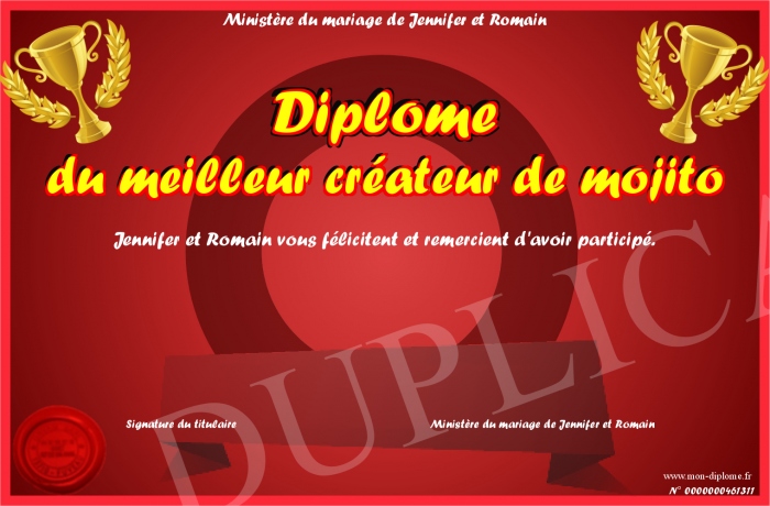 Envoyez par email votre Diplôme du meilleur créateur de mojito personalisé