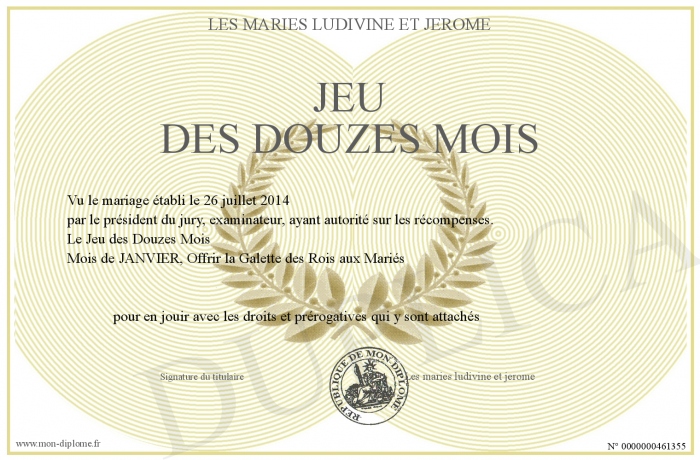 Envoyez par email votre Jeu des Douzes Mois personalisé