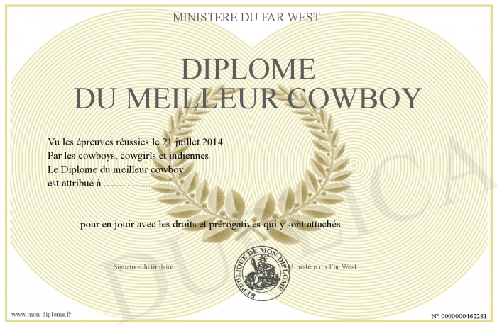 Envoyez par email votre Diplôme du meilleur cowboy personalisé