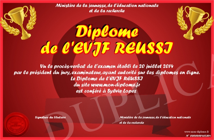 Envoyez par email votre Diplome de l'EVJF REUSSI personalisé