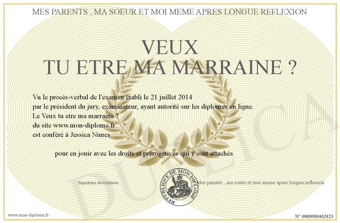 Envoyez par email votre Veux tu etre ma marraine ? personalisé