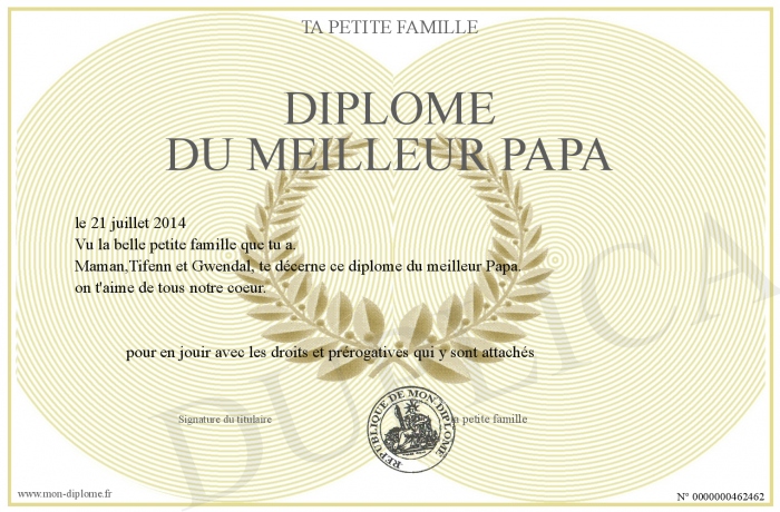 Envoyez par email votre Diplome du meilleur papa personalisé