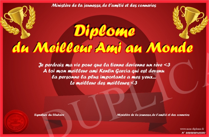 Envoyez par email votre Diplôme du Meilleur Ami au Monde personalisé