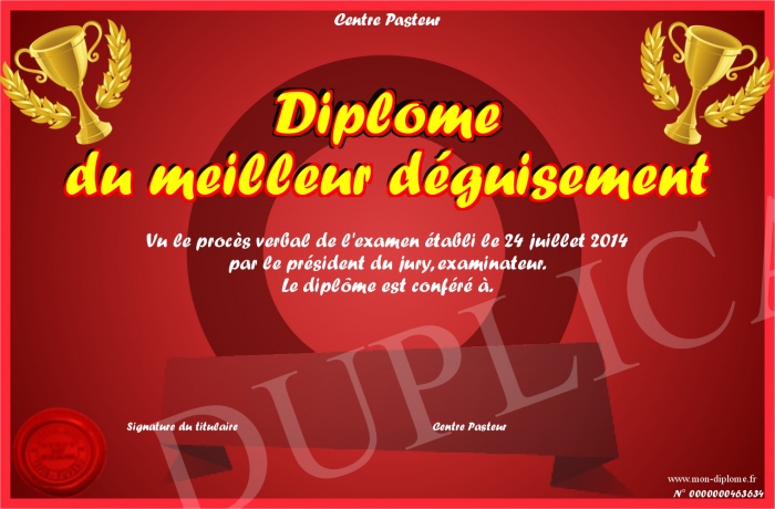Envoyez par email votre Diplôme du meilleur déguisement personalisé