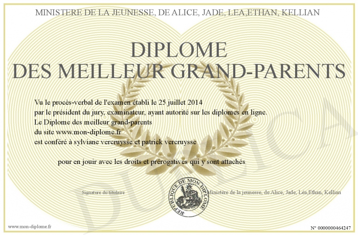 Envoyez par email votre Diplôme des meilleur grand-parents personalisé