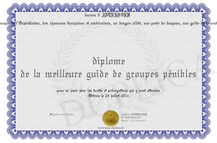 • diplôme de la meilleure guide de groupes pénibles