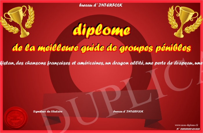 Envoyez par email votre diplôme de la meilleure guide de groupes pénibles personalisé