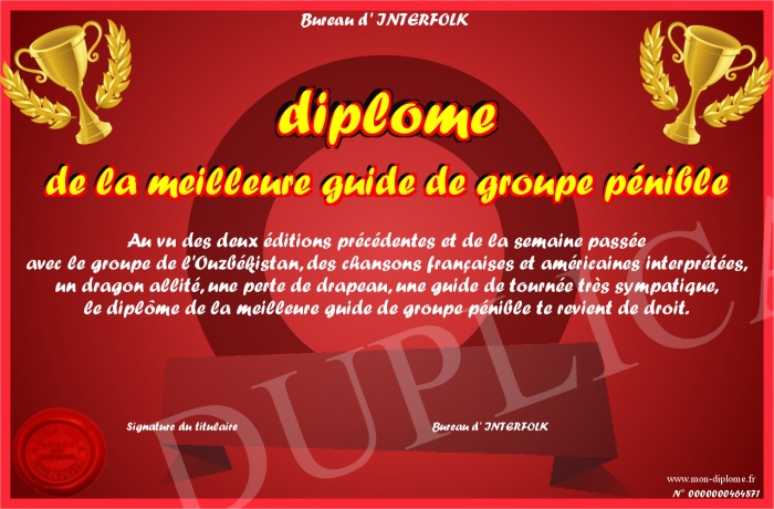 Envoyez par email votre diplôme de la meilleure guide de groupe pénible personalisé