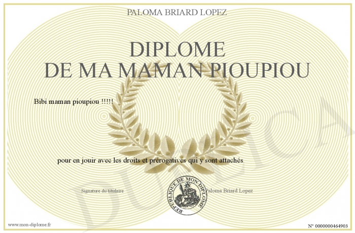 Envoyez par email votre diplôme de ma maman pioupiou personalisé