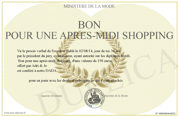 Envoyez par email votre bon pour une après-midi shopping personalisé