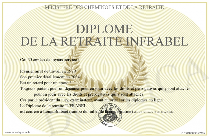 Envoyez par email votre Diplôme de la retraite INFRABEL personalisé