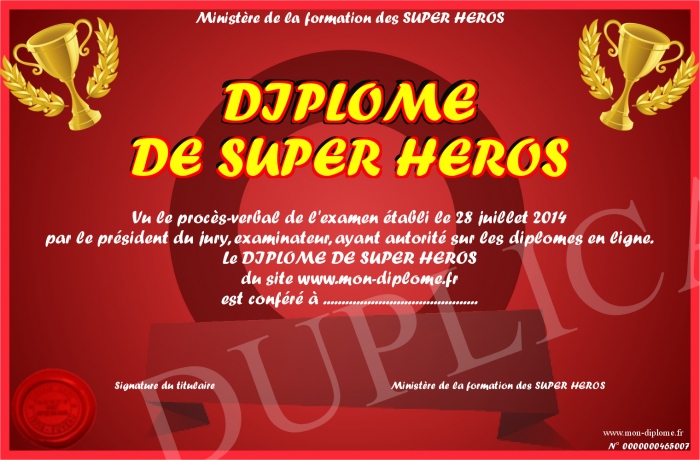 Envoyez par email votre DIPLOME DE SUPER HEROS personalisé