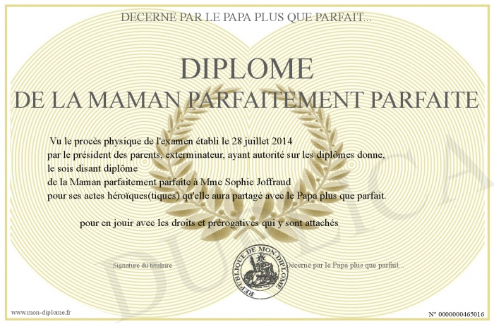 Envoyez par email votre Diplôme de la Maman parfaitement parfaite personalisé