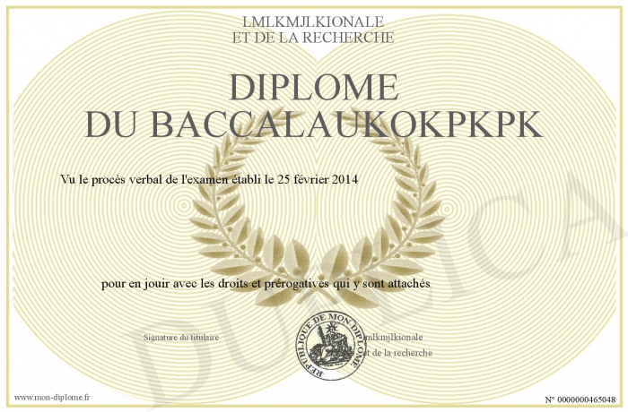 Envoyez par email votre Diplôme du baccalaukokpkpk personalisé