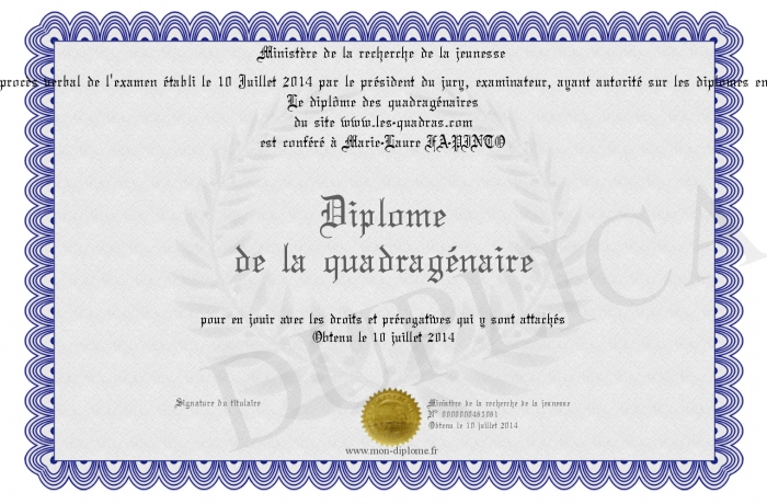 Envoyez par email votre Diplôme de la quadragénaire personalisé
