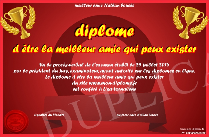 Envoyez par email votre diplôme d être la meilleur amie qui peux exister personalisé