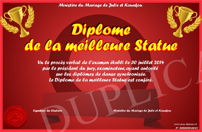 Envoyez par email votre Diplome de la meilleure Statue personalisé