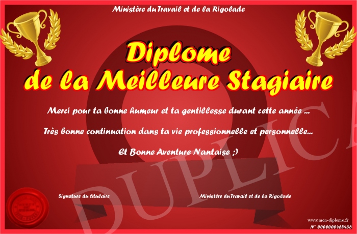 Envoyez par email votre Diplôme de la Meilleure Stagiaire personalisé